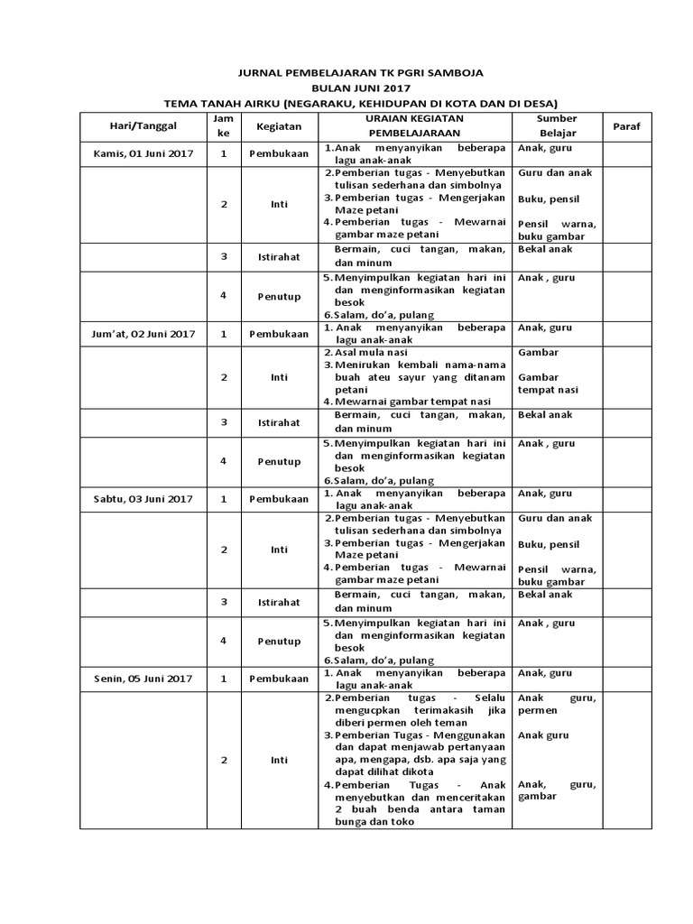 Jurnal pelaksanaan pembelajaran metode daring k13 untuk semester 1. Cara mengisi buku agenda harian sangatlah sederhana: Contoh format jurnal mengajar guru. Demikian contoh format jurnal kegiatan harian paud tk admin bagikan secara lengkap diharapkan bisa membantu memenuhi kelengkapan administrasi guru kelas di tingkat satuan pendidikan anak usia dini dan taman kanak kanak. Jurnal tentang kesenangan guru pada saat mengajar anak tk.